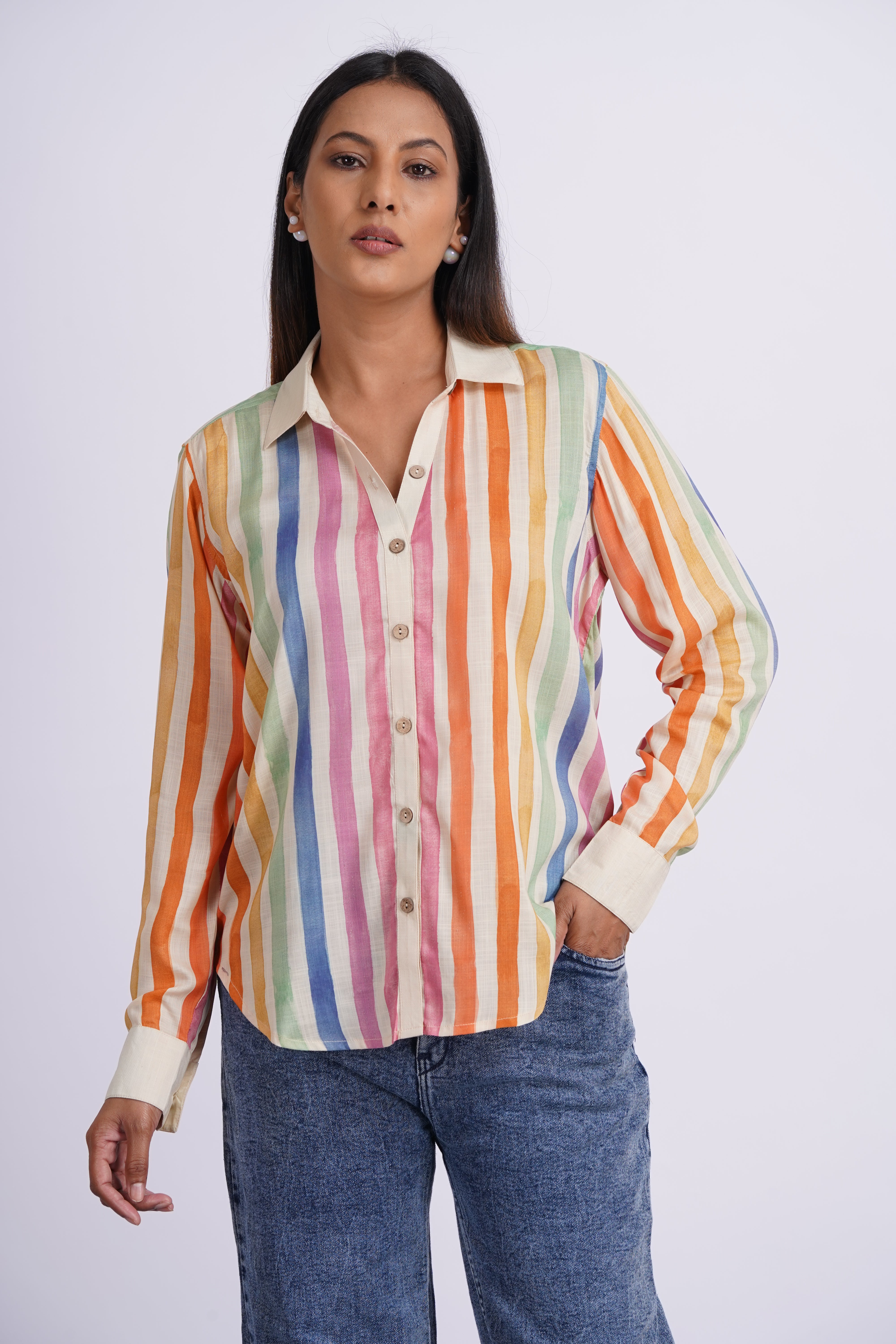 It was love at first sight for me with this shirt - it's too good to not buy! The chic half and half design speaks for itself. I wore it with jeans, sneakers and a cap and got so many compliments for the shirt. I am already thinking of ways to style it next with linen pants and some Minimul Jorhi! Its that easy to wear Minimul's clothes - you can style them in multiple ways, dress them up or down as the day requires.