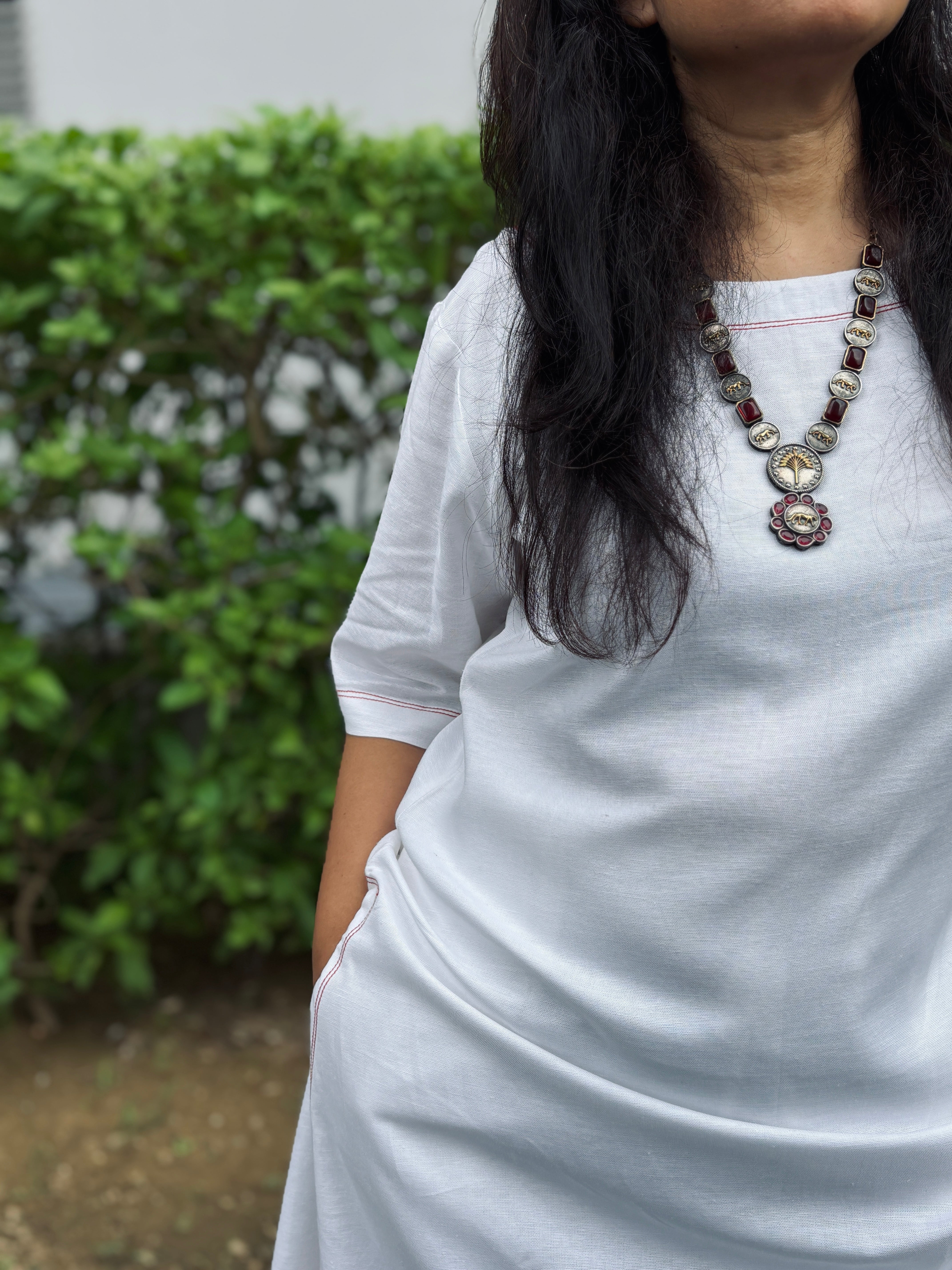 The set features an easy monotone silhouette with accented thread work- ideal for casual day out, travel or holiday!