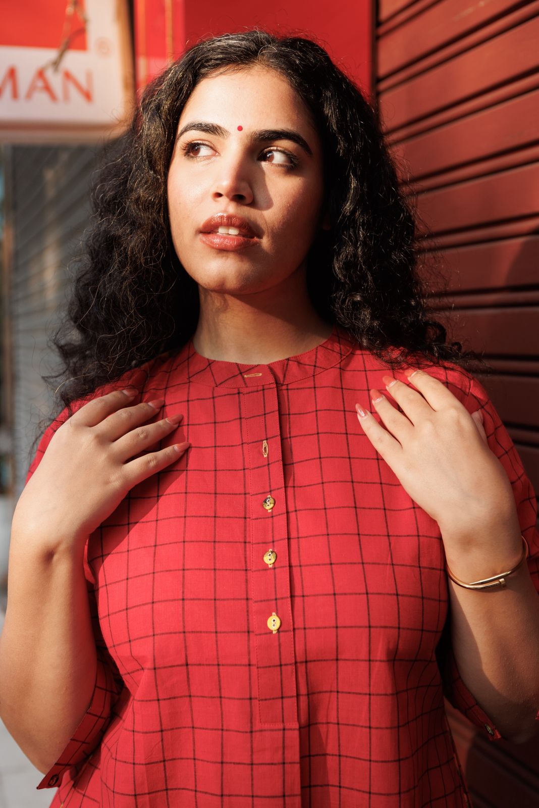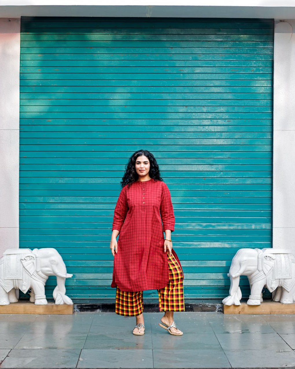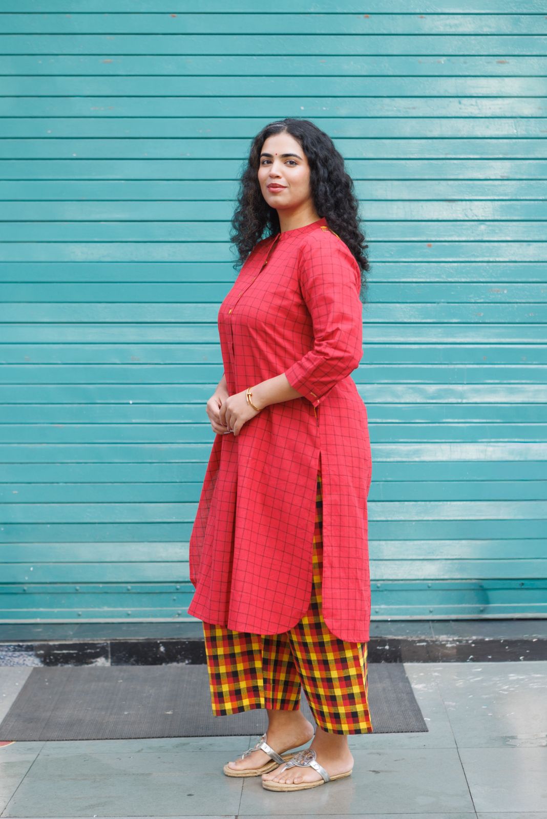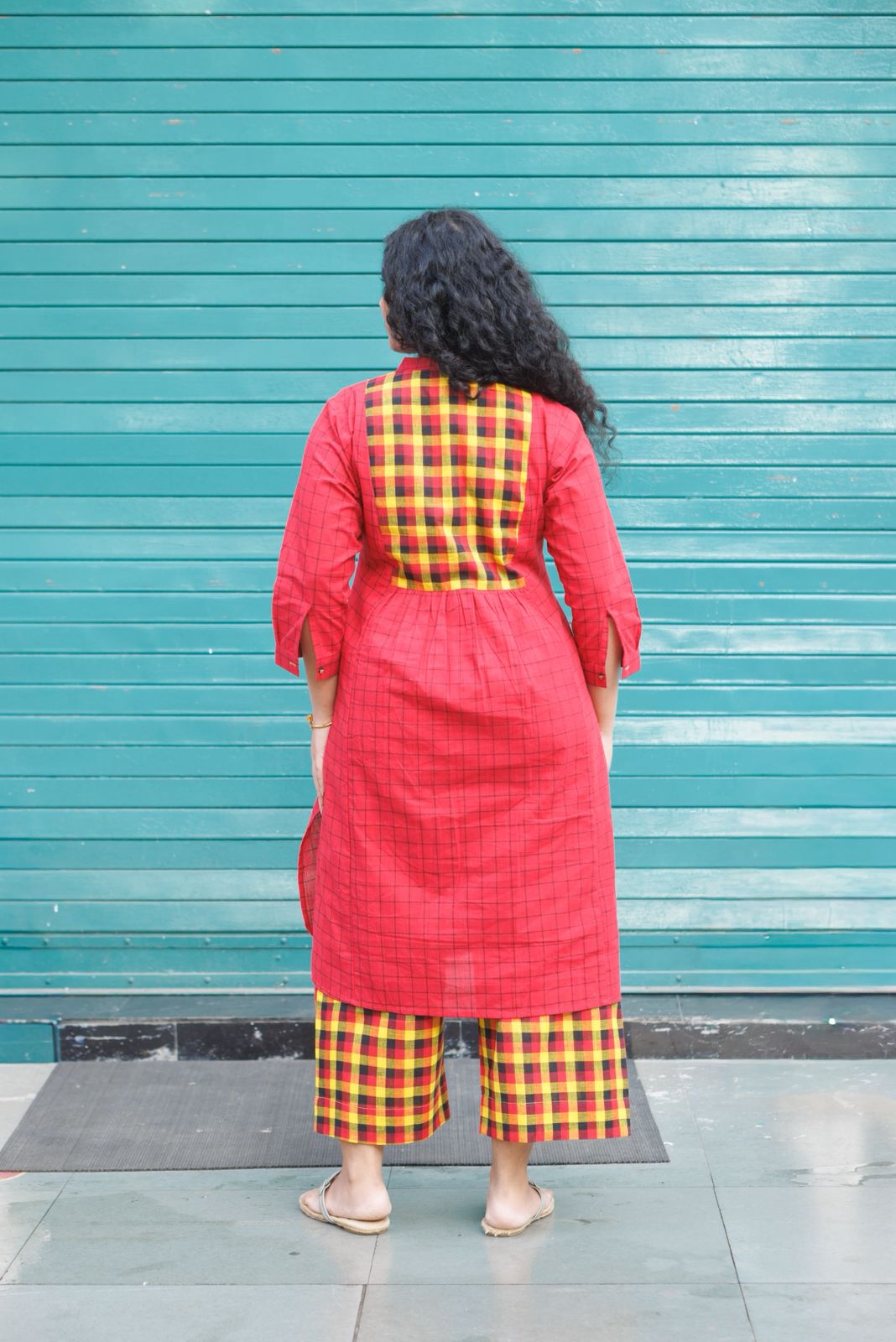 Umang Handloom Kurta set- Red Checks