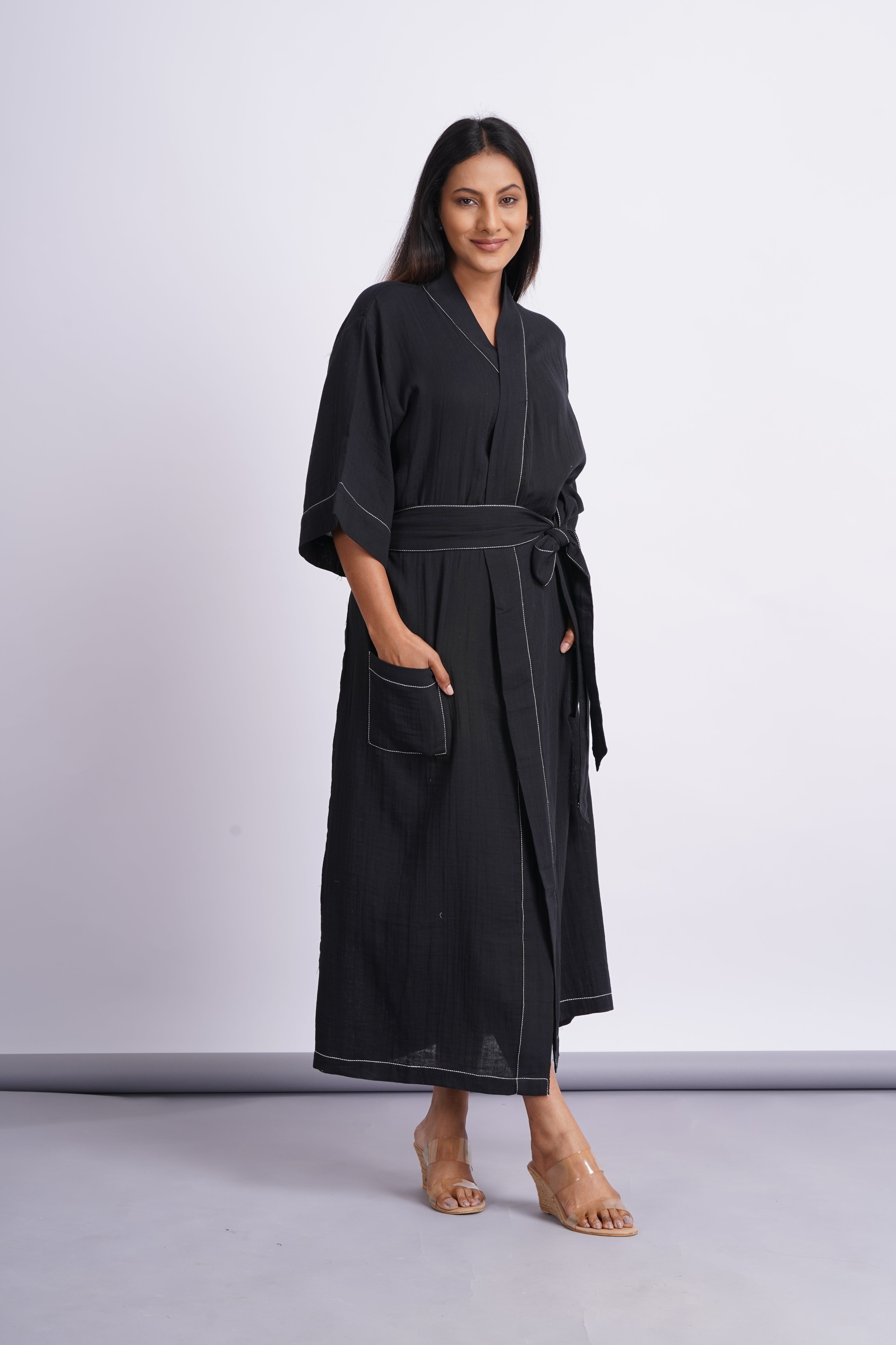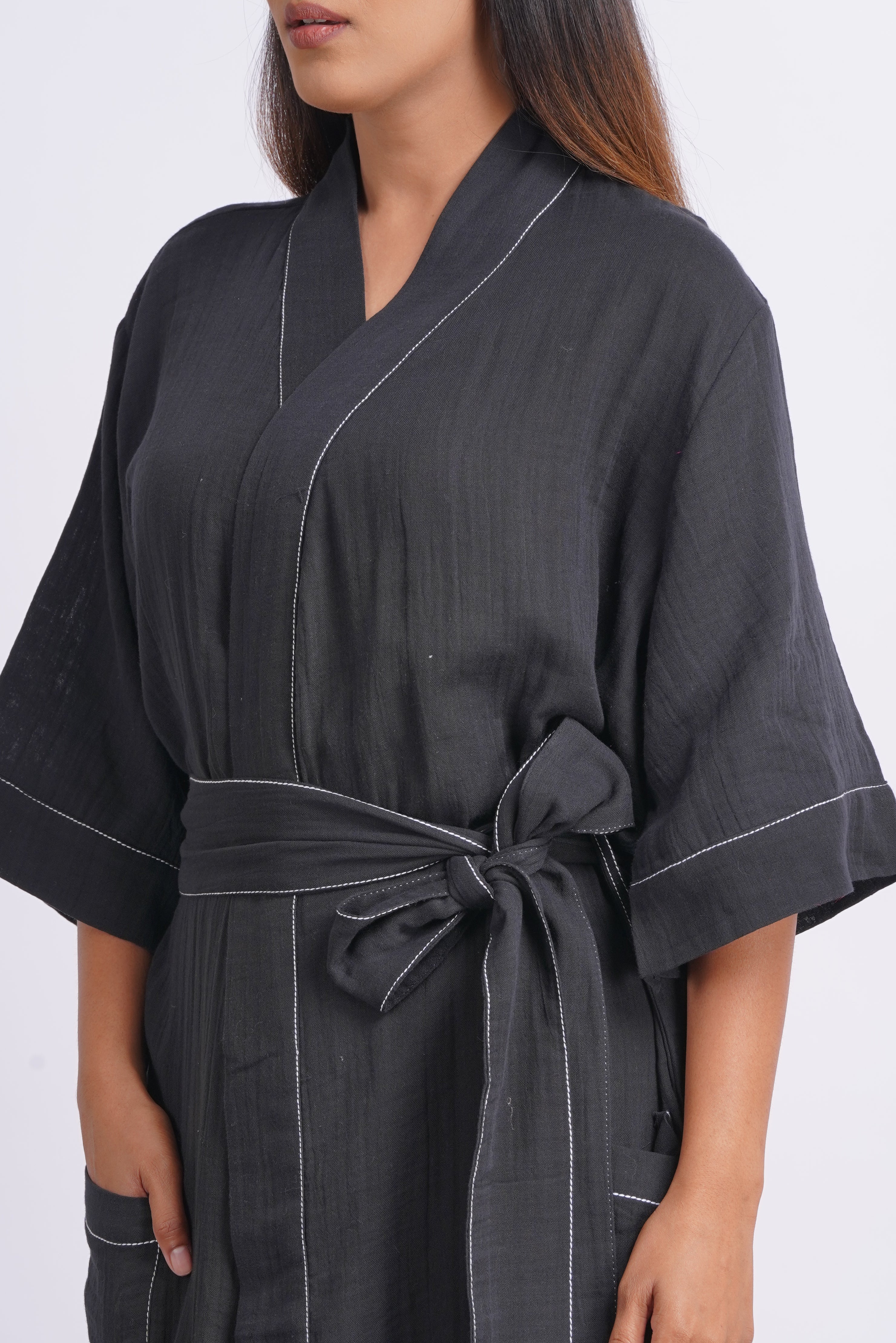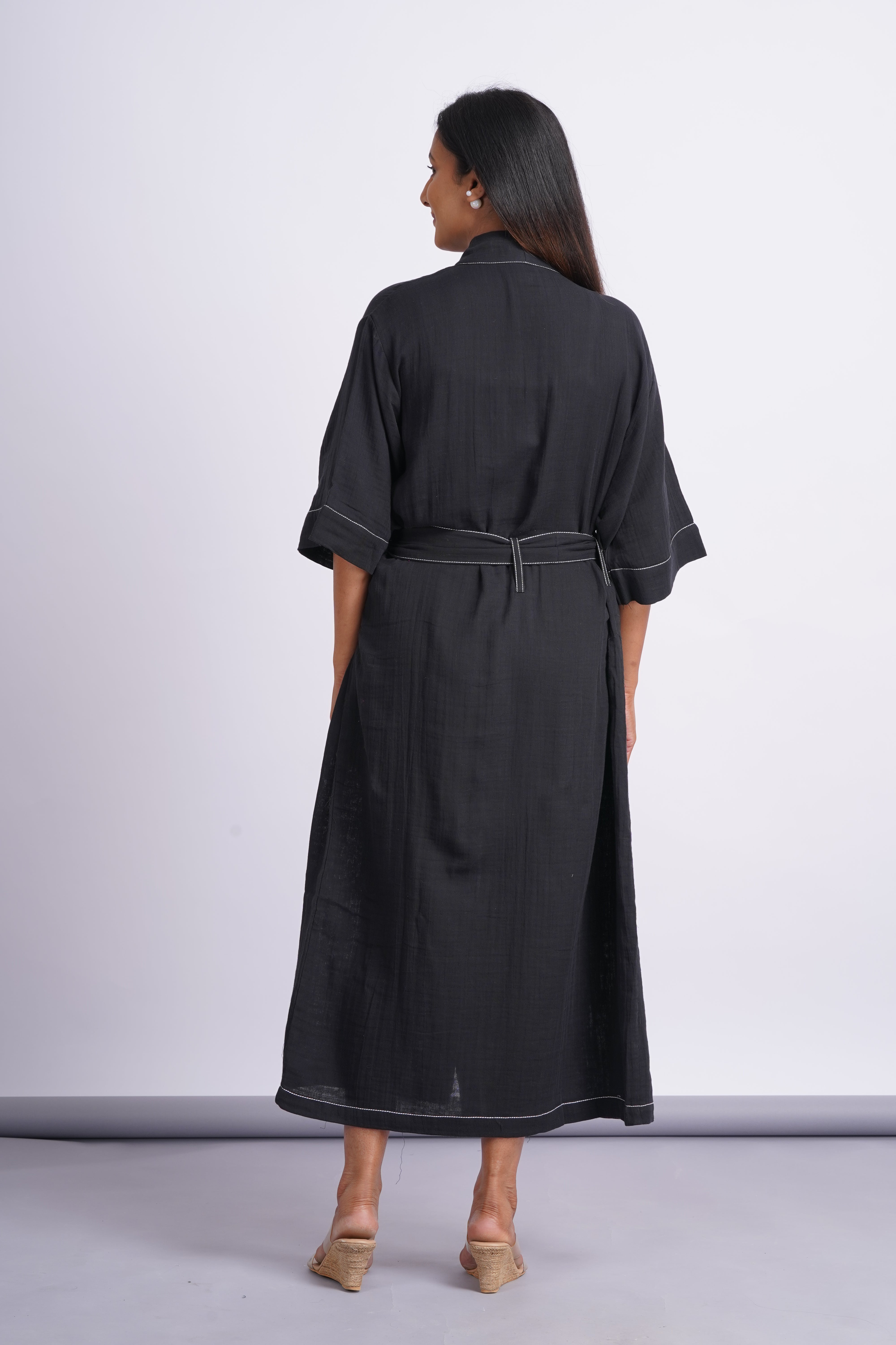 Gauze Cotton Day Robe- Black