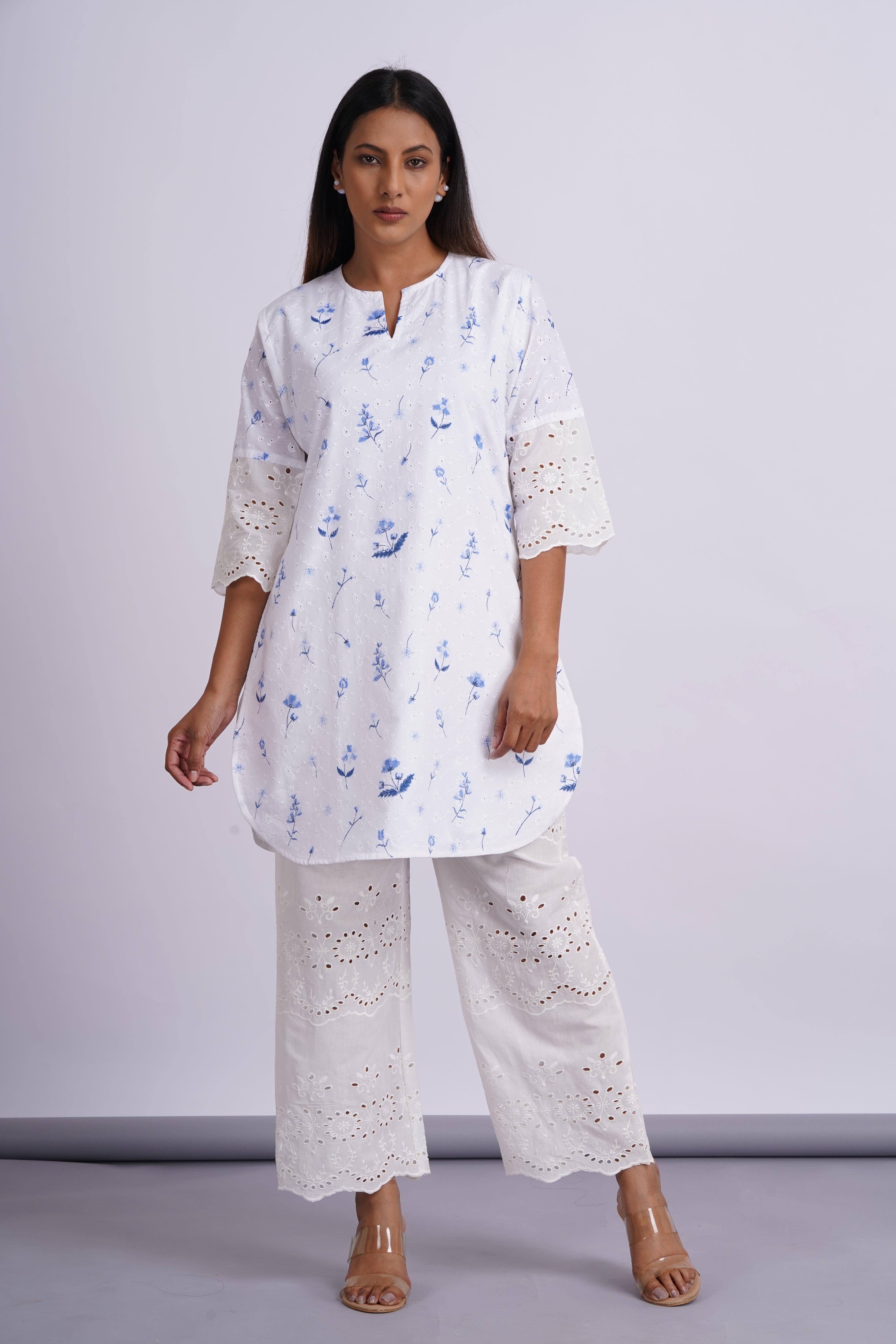 Model is chest 34 and wearing size S. This has full lining on the kurta and half lining on the pants.