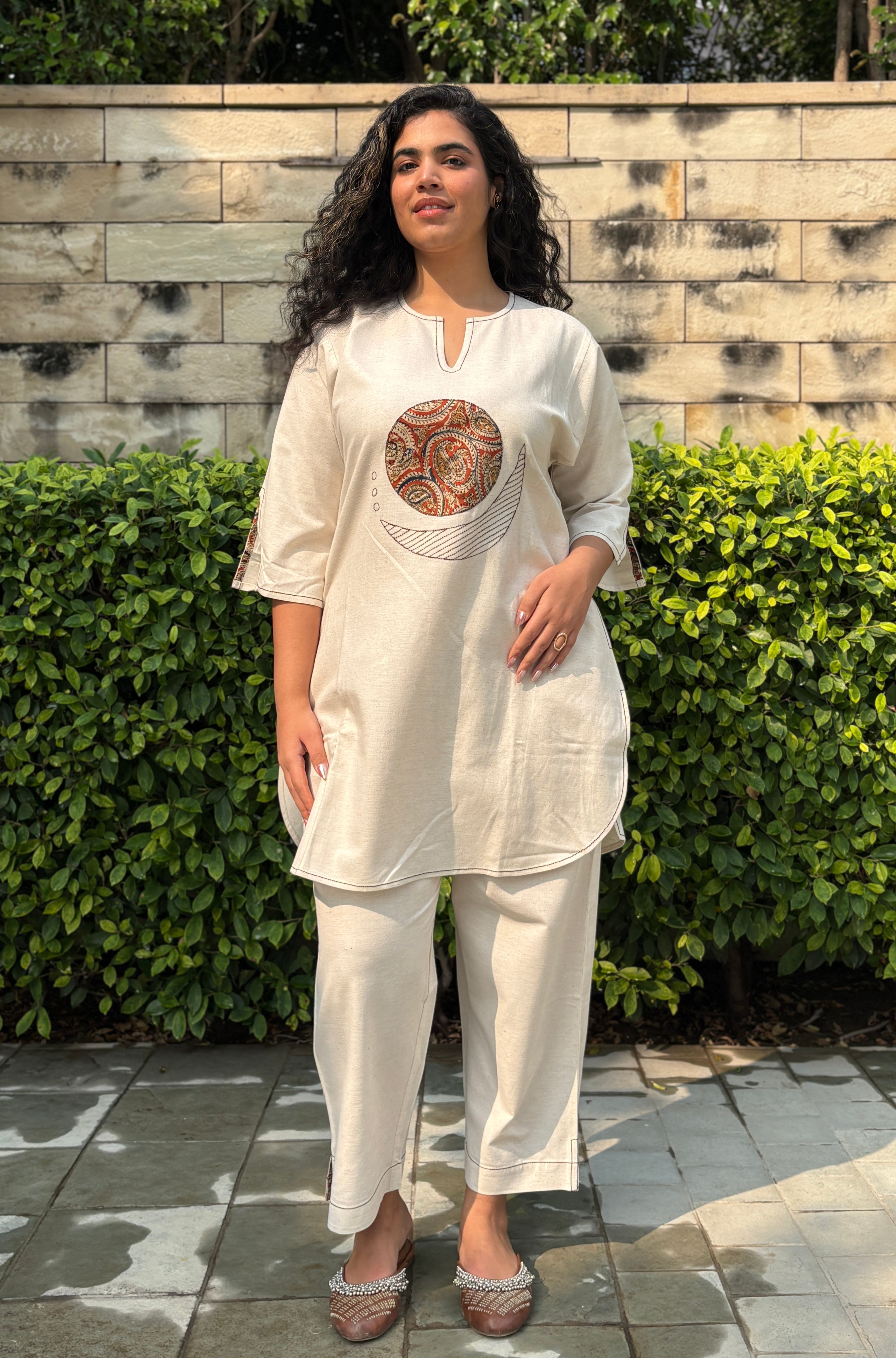 The set features an easy monotone silhouette with unique statement embroidery, ideal for casual work day, travel or holiday!