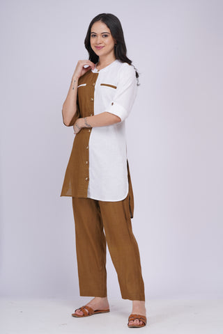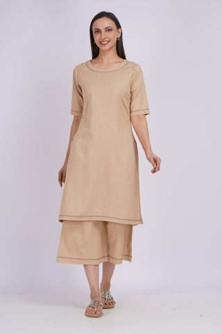 Meera Linen Kurta Set- Beige