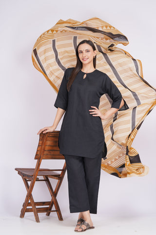Vasudha Kurta + Dupatta Set- Black Mustard