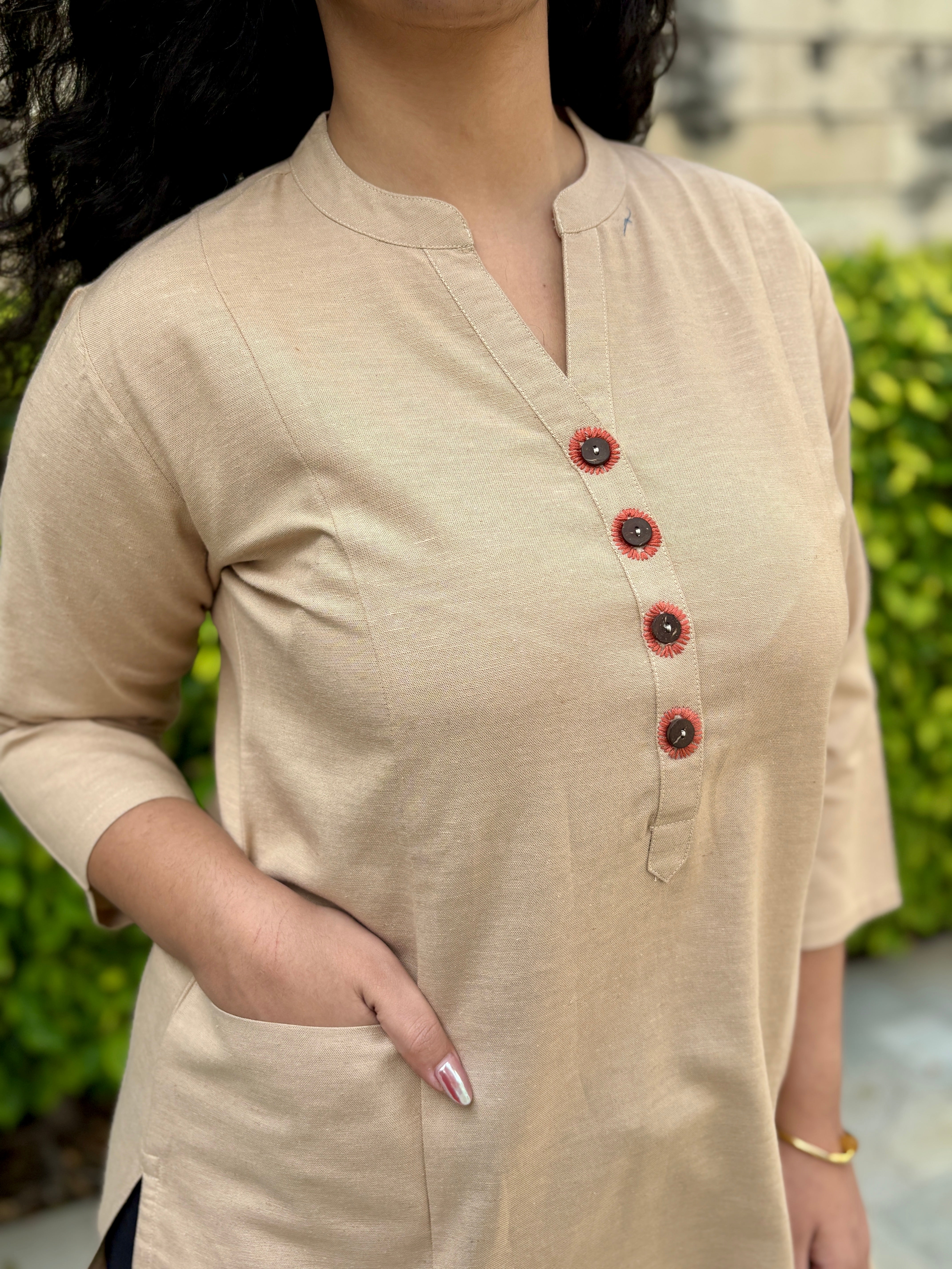 Sunflower Linen Pocket Kurta- Beige